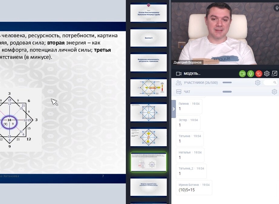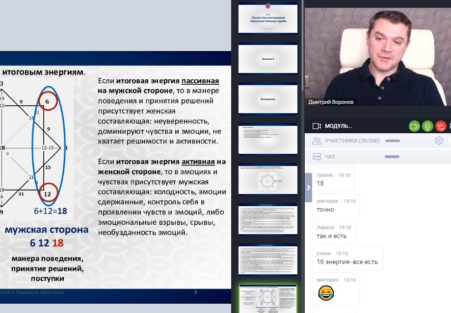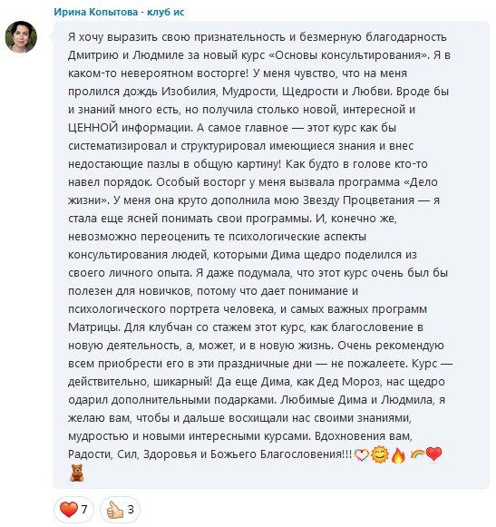 - Проводит регулярно курсы и мастер-классы по методу Зеркальная Матрица Судьбы