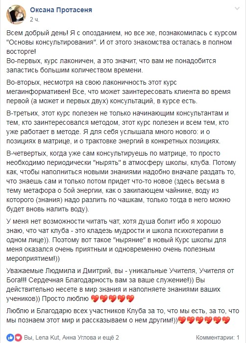 ОТЗЫВЫ О НАШИХ УЧЕНИКАХ, КТО УЖЕ ПРАКТИКУЕТ